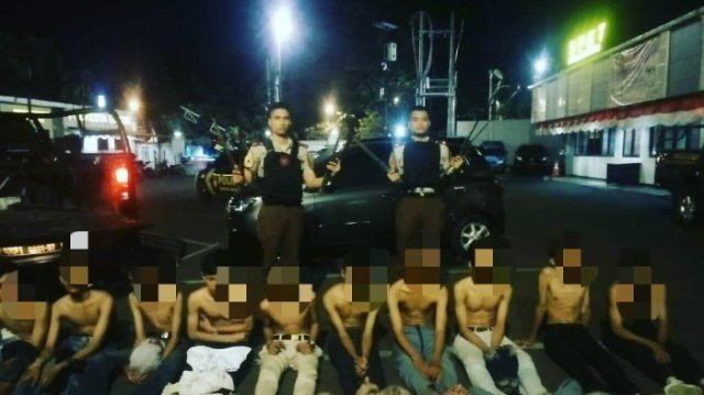 TIM Penjaga Gangguan dan Anti Kerusuhan (Jaguar) Polresta Depok mengamankan 10 pemuda yang meresahkan warga dan pengendara dari Jalan Juanda, Rabu (22/8) dinihari.