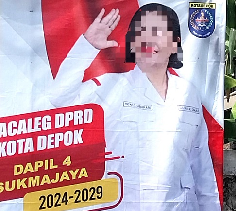 Sementara itu petugas Panwascam Beji, Winda saat dikonfirmasi wartawan tidak mengetahui adanya spanduk caleg dengan memasang logo Pemkot.
