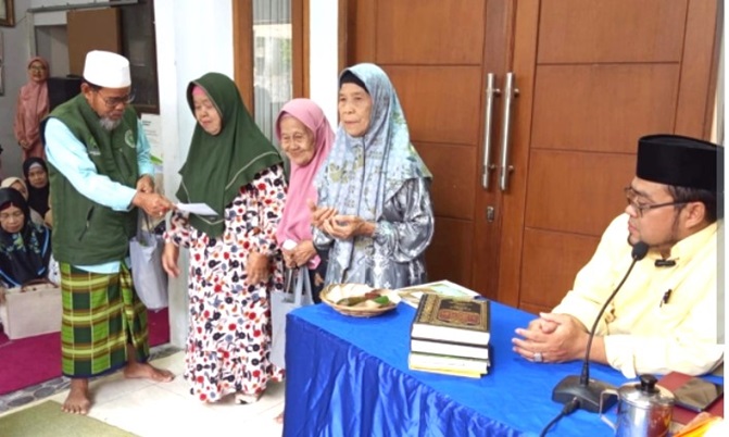 Pengurus Majelis Taklim Al-Bayyani saat menyantuni dhuafa secara simbolis.