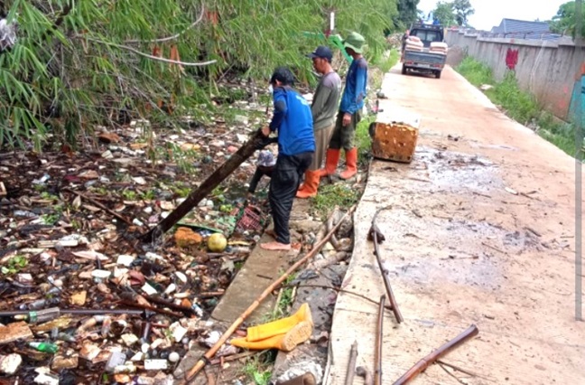 Lurah Kedaung, Kecamatan Sawangan, Dion Wijaya mengapresiasi kesigapan jajaran Satgas Banjir Dinas Pekerjaan Umum dan Penataan Ruang (PUPR) dalam membenahi tumpukan sampah bidang Outlet Situ di wilayah RW 05, Kelurahan Kedaung, Kecamatan Sawangan.