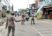 Satpol PP Senggetin Spanduk Liar di Jalan Raya Meruyung