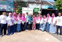 Kapolsek Cinere, Kompol Chairul Saleh didampingi Lurah Grogol, Kecamatan Limo, Boni Sobari Kusumah dan Ketua Tim Penggerak (TP) PKK Kecamatan Limo, Esy...